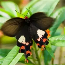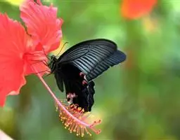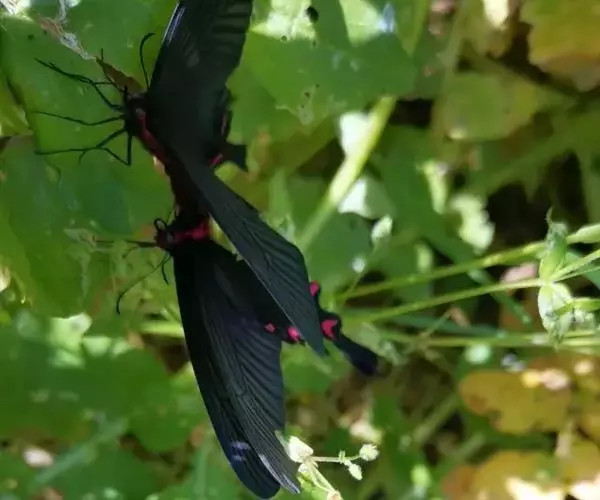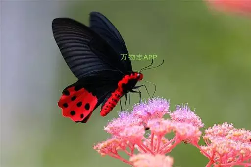 曙凤蝶(拉丁名:Atrophaneura horishana),成虫出现于夏季,生活在中海拔山区。喜访花。本种在局部地区数量不少,但仍被列为保育类昆虫。 曙凤蝶翅展110~130mm,体背黑色,两侧及腹面有红色绒毛。雄蝶翅膀正面黑得发光,有丝绒的质感,后翅背面下半部有曙红色大斑。雌蝶较之雄蝶略大,翅膀正面黑底带些褐色,后翅背面下半部的红色较浅。