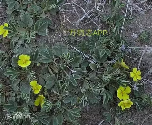 多年生草本,高2-15厘米,植株灰绿色。根圆柱形,多分枝。花茎丛生,密被星状毛及开展微硬毛。基生叶掌状3出复叶,连叶柄长I.5-7厘米,叶柄密被星状毛及开展微硬毛,小叶常有短柄或几无柄;小叶片倒卵椭圆形或菱状倒卵形,长0.8-3厘米,宽0.4-1.5厘米,顶端圆钝,基部楔形,每边有4-6个圆钝锯齿,两面灰绿色,密被星状毛及开展微硬毛,下面沿脉较密;茎生叶1-3,小叶与基生小叶相似;基生叶托叶膜质,淡褐色,被星状毛及开展微硬毛,茎生叶托叶草质,灰绿色,带形或带状披针形,外被星状毛。