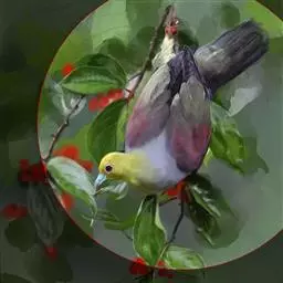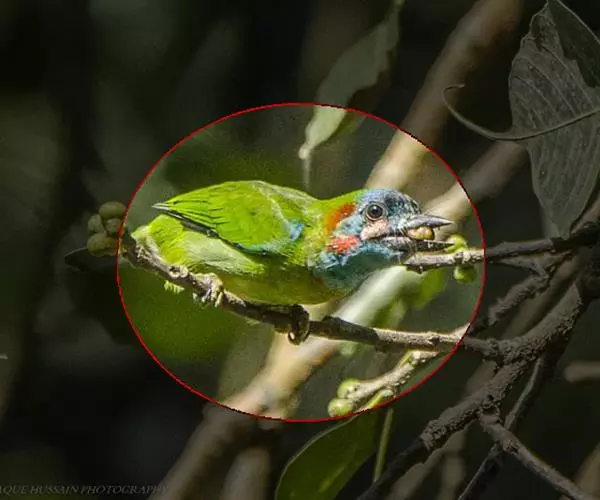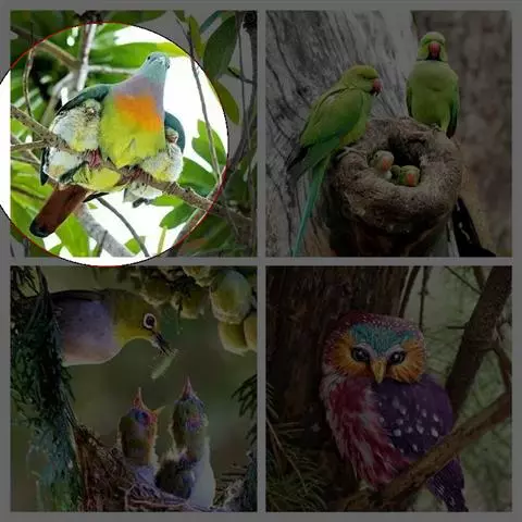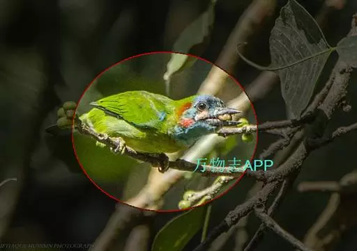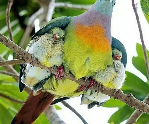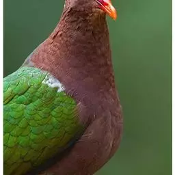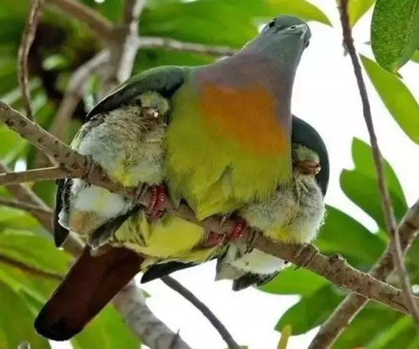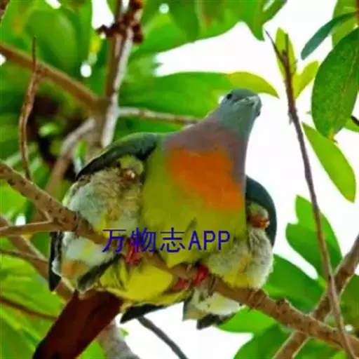 雌鸟上体的绿色部分较雄鸟晦暗,没有栗色而代之以暗绿色,头顶和胸部为淡黄绿色而没有橙色,其余部分与雄鸟相似。