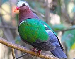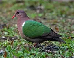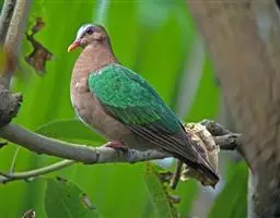 楔尾绿鸠(学名:Treron sphenura)体长30-35厘米,体重约300-400克。头部和颈部为淡黄绿色,并染有橙棕色。颈后部为绿色,背上部转为灰色。背下部至尾上覆羽为橄榄绿色。飞羽和覆羽呈褐黑色,中央尾羽与腰部同色,外侧尾羽呈灰色。颏部及喉部为黄色,胸下部至腹部呈淡绿黄色,下腹部为淡黄色,两胁呈蓝灰色。