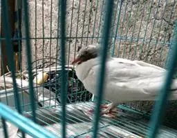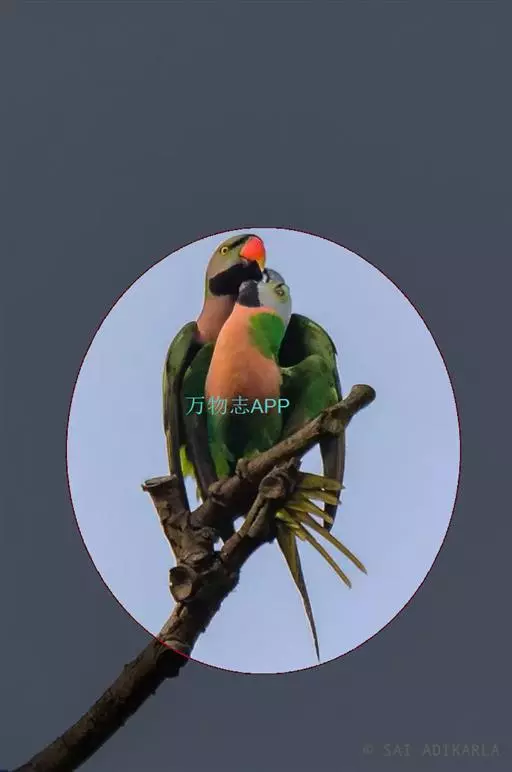 虹膜的内圈为蓝色,外圈为红色,眼周的裸皮为浅蓝色。嘴的基部为浅蓝色,端部灰色沾有橙色,脚红色。