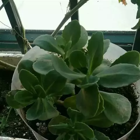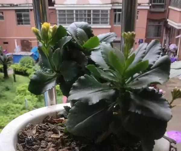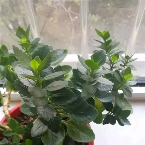 长寿花是常绿多年生草本多浆植物。植株小巧,茎直立,株高10-30厘米。叶对生,叶片密集翠绿,长圆状匙形或椭圆形,长4-8厘米,宽2-6厘米,肉质,叶片上部叶缘具波状钝齿,下部全缘,亮绿色,有光泽,叶边略带红色。叶片属厚肉质,密集深绿,有光泽。