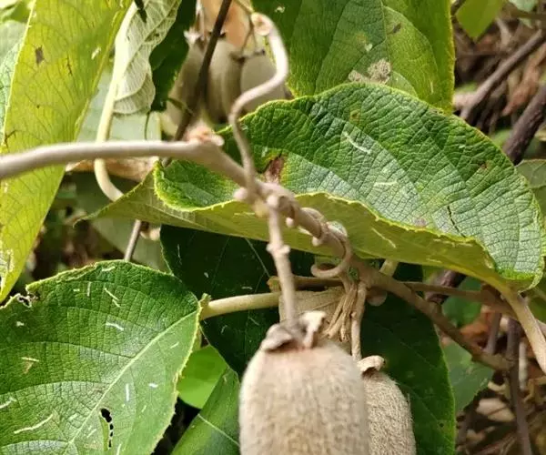 因猕猴桃属浅根性树种,根系扩展的面积比较大,故坑挖得不必太深,但应大些。栽前进行修根(剪去受伤、劈裂等残根)。栽种时要把苗木扶直、摆正,使根系舒展,一边将细碎表土埋盖根部,一边轻轻将苗木向上提动一下,使根系舒展,与土壤紧密接触,然后用脚踩实,需注意不能让苗根接触底肥,否则会烧死苗木。同时,还要注意把苗木的接口露在地表以上(约5厘米左右),绝不可栽种过深或过浅。栽后,浇足水。约7天左右,再浇第2水,水渗下后封土盖地膜保湿、保温。