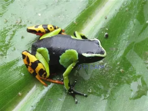 4.绿色箭毒蛙原产于美洲中部和南部,后在1932年为控制蚊子的数量而被引入了夏威夷的瓦胡岛。这种蛙将卵产在森林地面的落叶上。当卵孵化出来之后,雄蛙会将蝌蚪带入水中。