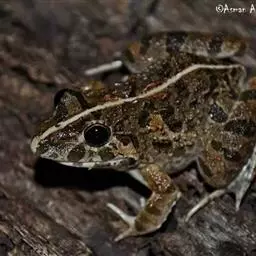 黑斑侧褶蛙是无尾目蛙科侧褶蛙属两栖动物,又名为刺雄齿突蟾、黑青蛙。 头长大于头宽;吻部略尖,吻端钝圆,…