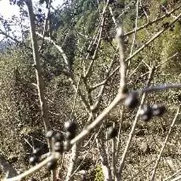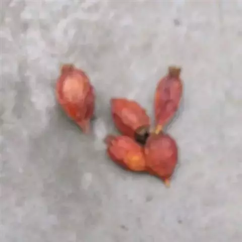 核果圆柱形,长5-9毫米,直径2.5-3毫米,基部稍宽,有皿状的宿存花盘,成熟时紫红色或黑色;果梗长3毫米。花期6-8月,果期翌年5-6月。