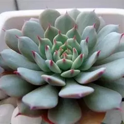 吉娃莲,景天科拟石莲花属,别名:吉娃娃,吉娃莲,植株小型,无茎的莲座叶盘非常紧凑。卵形叶较厚,带小尖,…