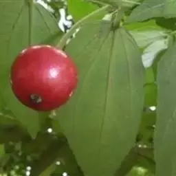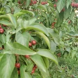 果实近球形,直径1-1.5厘米,红色,萼洼梗洼均下陷,萼片多数脱落,少数宿存。花期4-5月,果期8-9月。