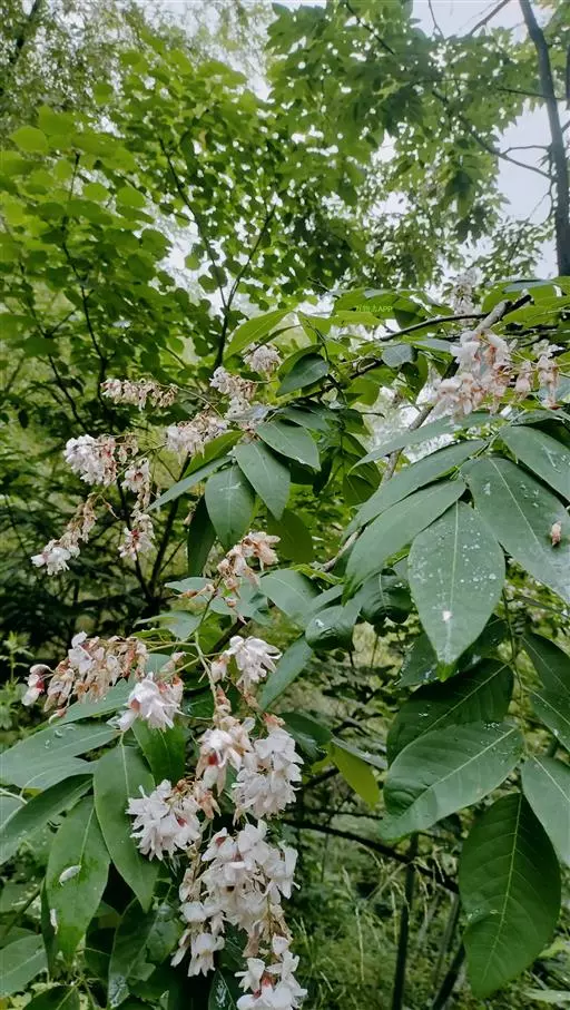 乔木,高10-20米;树皮灰褐色;小枝有较明显的皮孔。羽状复叶通常长25-45厘米,总轴有疏短柔毛或无毛;叶柄长10-18厘米,小叶7-15片,纸质或革质,狭椭圆形,菱状长圆形,长圆状披针形或卵状披针形,多少偏斜,长6-26厘米,宽3-9厘米,全缘,顶端渐尖或急短渐尖,基部钝圆或短尖、楔形,叶面绿色,无毛,叶背粉绿色或灰白色,有短柔毛,常在中脉和侧脉两侧较密;叶脉在叶背明显,侧脉8-15对;小叶柄长2-10毫米,无毛。