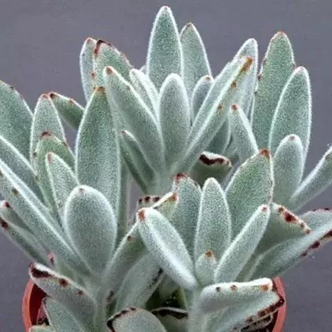 褐斑伽蓝是景天科、伽蓝菜属多年生肉质草本植物或小灌木。全株灰白色,密布白色茸毛。叶片长卵形,…