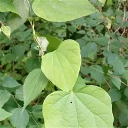 蝙蝠葛(学名:Menispermum dauricumDC.)是为防己科蝙蝠葛属植物,草质、落叶藤本,根状茎褐色,垂直生,茎自位于近顶部的侧芽生出,一年生茎纤细,有条纹,无毛。叶纸质或近膜质,长和宽均约3-12厘米;叶柄长3-10厘米或稍长,有条纹。圆锥花序单生或有时双生,有细长的总梗,有花数朵至20余朵,花密集成稍疏散。核果紫黑色;果核宽约10毫米,高约8毫米,基部弯缺深约3毫米。花期6-7月,果期8-9月。