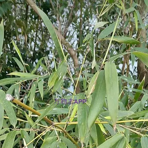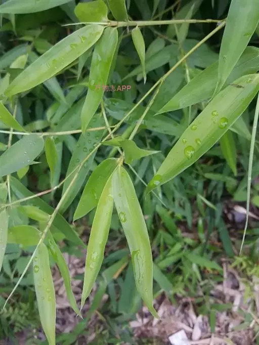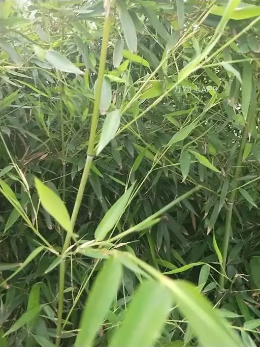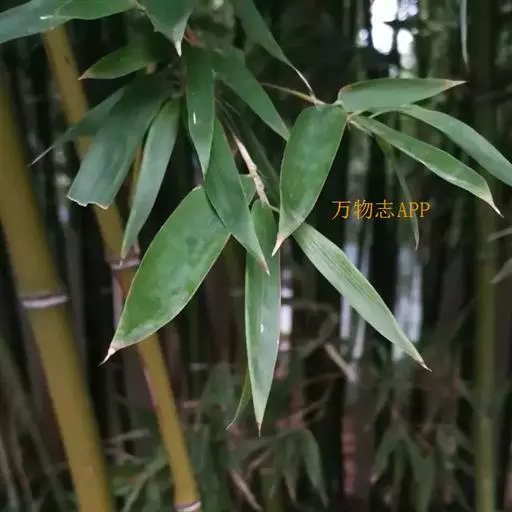 形态特征:多年生竹类,地下茎匍匐,秆高约3m,直径1~l.5m,箨甚长,简期几抱没节间,外表粗糙,具刺毛,不易脱落,节间lO~20cm,上端节上着生细枝,3出或多数,亦具有箨或无箨,叶舌片黑褐色,密生毛茸,假叶长卵形,锐尖头,叶粗革质,平行脉宽2~3m,1小枝叶约l~3枚。叶柄扁平,叶片披针形革质,叶背带粉色,密生短刚毛,尤以渐尖锐尖,楔脚或圆脚,长l0~20cm,宽1.5~2cm,极少开花。