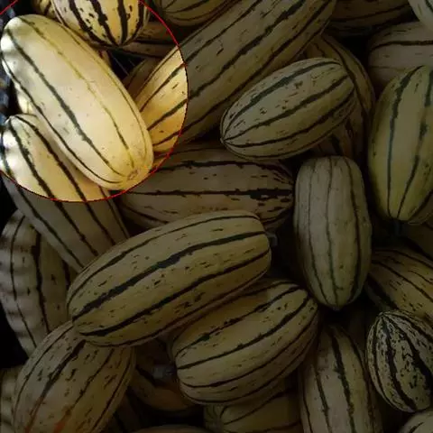 种子无种皮,为以种子供食用的品种。植株蔓生,蔓长1.6米,第一雌花着生于第七至九节,以后隔1-3节再出现一朵雌花。瓜短柱形,嫩瓜可做蔬菜。老熟瓜皮橘黄色,单瓜重4-5千克。