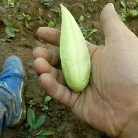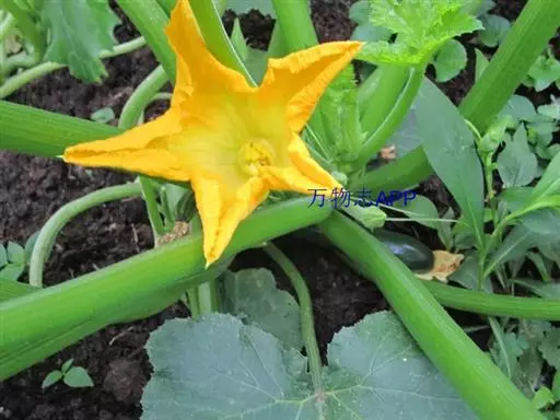 植物匍匐生长,茎蔓长2.5米左右,分枝性中等。叶三角形,浅裂,绿色,叶背多茸毛。主蔓第九节以后开始结瓜,单株结瓜2-3个。瓜圆筒形,中部稍细。