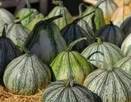 花叶西葫芦 又名阿尔及利亚西葫芦。中国北方地区普遍栽培。蔓较短,直立,分枝较少,株形紧凑,适于密植。叶片掌状深裂,狭长,近叶脉处有灰白色花斑。主蔓第五至六节着生第一雌花,单株结瓜3-5个。瓜长椭圆形,瓜皮深绿色,具有黄绿色不规则条纹,瓜肉绿白色,肉质致密,纤维少。