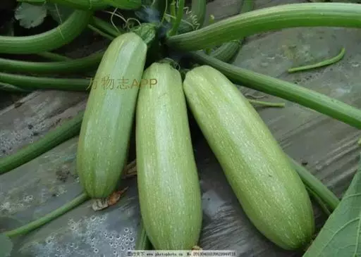 长蔓西葫芦 植株蔓长3米,粗2.2厘米。叶心脏形,深绿色,叶缘有不规则锯齿。第一雌花着生于主蔓第四至六节。瓜长椭圆形,表皮光滑,绿白色,有棱6条。一般单瓜重2-3千克。