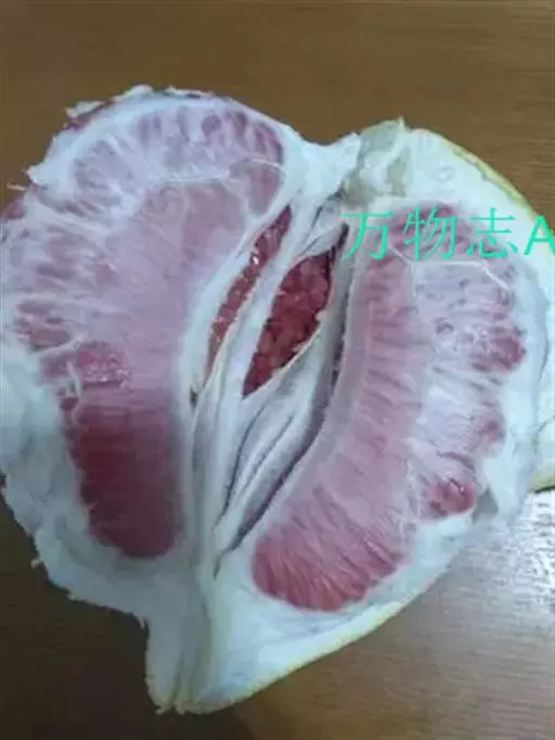 坪山柚:果椭圆形,两肩削,果顶近于平坦,蒂部有凸棱,果皮油胞大,凸起,海绵层及果肉均淡红色,果心空,肉爽脆,水分多,味清甜,酸份低。果期与文旦同。