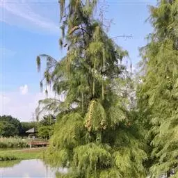 落羽杉 Rich.),杉科落羽杉属木本植物。树干尖削度大,基部通常膨大,具膝状呼吸根,树皮棕色,…