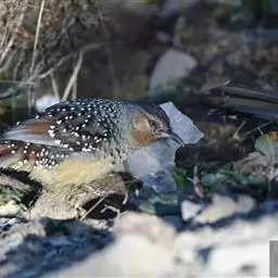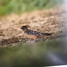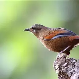 大噪鹛:中型鸟类,体长32-36厘米。额至头顶黑褐色,背栗褐色满杂以白色斑点,…
