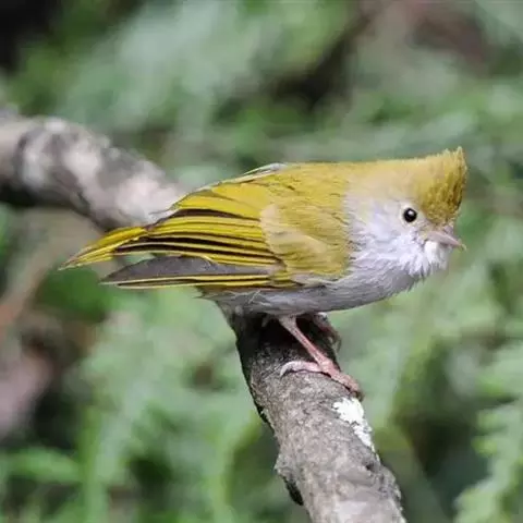栗耳凤鹛,雌雄羽色相似。额、头顶至枕灰色,头顶有一短的不甚明显的羽冠,…