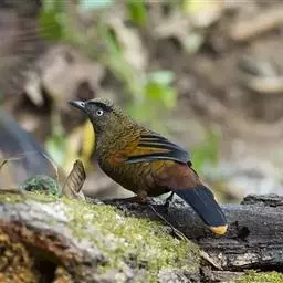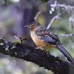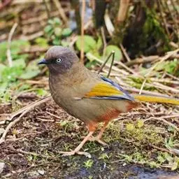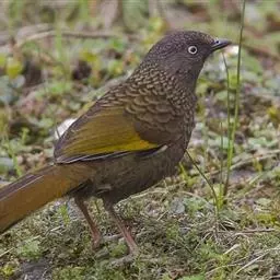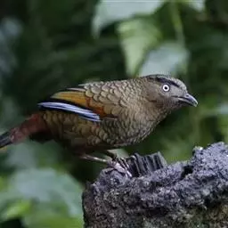 蓝翅噪鹛:噪鹛科、彩翼噪鹛属动物。中型鸟类,体长22-25厘米。上体棕橄榄褐色密被黑色鳞状斑,…