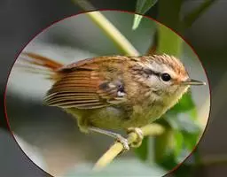 纹喉凤鹛:小型鸟类,体长13-16厘米。头顶和羽冠暗褐色或褐灰色,上体橄榄褐色,飞羽黑褐色,…