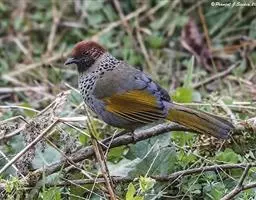 斑背噪鹛是噪眉科、噪鹛属中型鸟类,体长24-28厘米。额至头顶多为栗褐色,眼先、眼周和眼后纹均白色,…