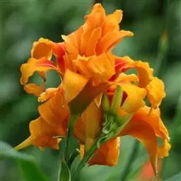 金娃娃萱草:是萱草的人工栽培的园艺品种。地下具根状茎和肉质肥大的纺锤状块根。叶基生,条形,排成两列,…