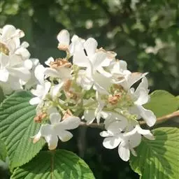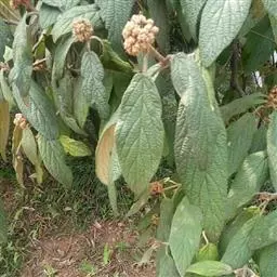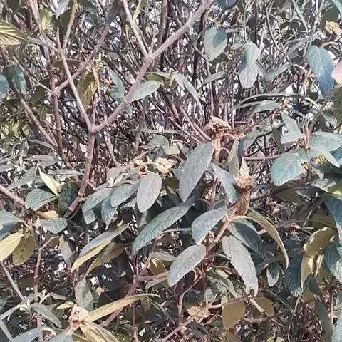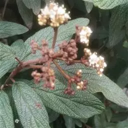 皱叶荚蒾是五福花科荚蒾属的小乔木植物。植株高达4米;叶柄及花序均被由黄白色、黄褐色或红褐色簇状毛组成的厚绒毛;小枝粗壮,稍有棱角;叶革质,卵状矩圆形至卵状披针形;聚伞花序稠密,总花梗粗,四角状,花冠呈现白色,雄蕊高出花冠;果实红色,后变黑色,宽椭圆形,无毛;花期为4-5月;果熟期为9-10月。皱叶荚蒾原产于中国,分布于陕西、湖北、四川及贵州等地。生长于山坡林下或灌丛中,海拔800-2400米。其性喜好阳光,耐半阴,喜温暖,有一定的耐寒性,喜湿润,不耐涝,耐中度盐碱,但在深厚肥沃、排水良好的中性或微酸性沙质土壤中生长更好,耐修剪,生长缓慢。其一般的繁殖方式为播种和扦插繁殖。皱叶荚蒾味苦,性凉。具有清热解毒、凉血止血的功效。可用于湿热痢疾、痈疽疮疖、咳血、吐血、便血、跌打损伤等疾病。皱叶荚蒾给人以郁郁葱葱的景象,全年观叶、春季观花