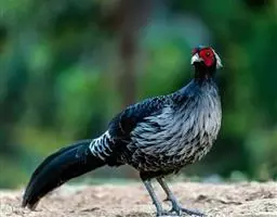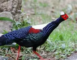 黑长尾雉大型鸡类,体长53~88厘米。雄较雌大。雄鸟通体紫蓝色,脸鲜红色,翅上有一条显著的白色翅斑…