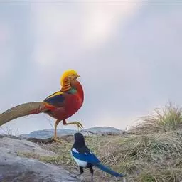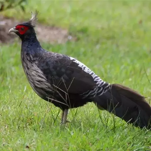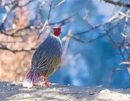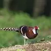 白颈长尾雉:大型鸡类,体长81厘米,体型大小和雉鸡相似。雄鸟头灰褐色,颈白色,脸鲜红色,其上后缘有…