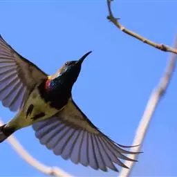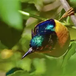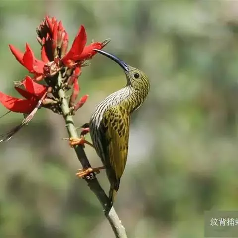 纹背捕蛛鸟:为太阳鸟科捕蛛鸟属的鸟类。是太阳鸟科中体型较大的一种,体重25-45克,…