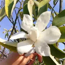 深山含笑是木兰科含笑属常绿大乔木。株高达20米;芽、幼枝、叶下面、苞片均被白粉;叶为革质宽椭圆形,…