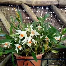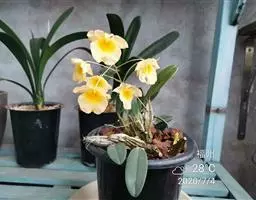 上盆(或翻盆)时间一般在春季3-4月或秋季10-11月。花盆以口小、盆深、底孔大的为佳。新从山上挖来的野生苗需理植于瓦盆(泥盆)中,这样兰花泥易干,通气性好.容易发根;2-3年后方可换人紫砂盆或瓷盆。兰花种植(在盆中)的方法与一般花卉不同,尤其是名种兰花,翻种移盆必须洗根。方法足将根浸入清水中,用旧牙刷或毛笔轻轻洗刷,切勿用力过大伤根;用剪刀将残叶、黄叶、断裂根、发黑腐烂根剪去,注意勿伤幼芽。然后将处理好的植株放在阴凉通风处晾干,待根部发白并显细小皱纹柔软时,再植入盆中。 方法一 准备好兰盆及植料后,将兰株倒拿(根在上,叶在下)放于水龙头下以慢水冲洗,但水压切忌过强,以免伤兰根及叶子。用拇指和食指抓住兰头,小指抵住盆缘,用竹筷将根固定,当放入盆内时,尽量不要让根接触到盆壁。将豆粒大的混合石砾倒入盆底至三分之一处。然后倒入中粒植料至五分之四处,填实和尽量不要留下空间。将竹筷拔出,并摇实盆中植料。填实植料后,再用大粒植料埴入至距盆缘1.5厘米处。最后再倒入豆粒大植料,以将假鳞茎全部埋入土中为度,然后充分摇实。用压土工具轻压植料,并将表面弄平。种植完毕后,植料在盆中以中央稍高为好。 方法二 要注意盆底排水,泥盆用碎瓦填,紫砂盆必须用穿孔尼龙纱罩住盆底。植前先在盆内铺上粗石子,占盆深2/5左右,粗石培养土,厚3-5厘米,然后放入兰草。上盆时注意根部要自展,不能卷曲。种植名种兰草时一定要将老草靠边,新草放在中心,这样再发新草就有余地。种植时,左手握持兰草,右手加泥(要防止泥土贯入叶心),再将兰株稍稍提起,使根自然舒展。然后边加土边摇盆,使土与根紧密接触。再用手将茎部四周的泥土按紧,最后使盆面略显馒头状(即中间四周略低)。上面铺覆一层青苔或细石子,这样盆土不易板结并可减少水分蒸发。上完盆,立即浇水。第一次浇水水量要充足。最后将兰盆放置阴处。一个月内不宜直接晒太阳,并控制浇水,不宜太湿,以后放置地点宣选择在半阴半阳、通风透气,早上照到太阳的地方。