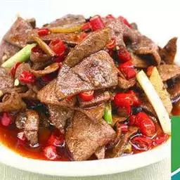 土匪猪肝,又叫湘西土匪猪肝,是湘西地区的一道特色菜品。它是将沸水焯过的猪肝加配料爆炒而成的具有湘西特色的香辣美食。口味香辣霸气,鲜嫩润口。