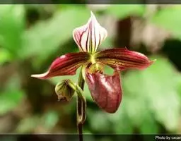 斑叶杓兰:植株高约10厘米,地下具较粗壮而短的根状茎。茎直立,较短,顶端具2枚叶。叶近对生,…