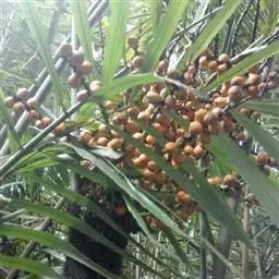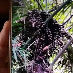 霸王棕的果实为核果,其种子个体较大,单粒种子重达14-17克,具有坚厚的种壳。种子基部有3孔,其中,l孔与胚相对,萌动时胚根由此穿出,其余2孔为假孔。果腔内胚乳含有丰富的营养物质,供种子萌发时吸收。