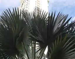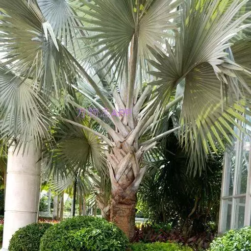 霸王棕,又名稗斯麦桐、美丽蒲葵。树姿魁伟、雄壮,特别是掌状叶硕大丰满,呈神奇的蓝绿色,因此被命名者比之为德国“铁血宰相”——稗斯麦而得名。南方沿海城市营造“椰风海韵”的热带海滨景观。