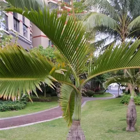 霸王棕 霸王棕属于单干的棕榈科植物,移植后须等待新根长出后才能恢复生长。尽可能地保护根系、促进发新根是移栽成活的关键技术。
