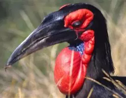 大鸨 大鸨成鸟两性体形和羽色相似,但雌鸟较小。繁殖期的雄鸟前颈及上胸呈蓝灰色,头顶中央从嘴基到枕部有一黑褐色纵纹,颏、喉及嘴角有细长的白色纤羽,在喉侧向外突出如须,长达10~12厘米。颏和上喉灰白色沾淡锈色。后颈基部栗棕色,上体栗棕色满布黑色粗横斑和黑色虫蠹状细横斑。初级飞羽和次级飞羽黑褐色,具白色羽基;大覆羽和大部分三级飞羽白色,中覆羽和小覆羽灰色,具白色端斑。前胸两侧具宽阔的栗棕色横带,下体余部白色。中央尾羽栗棕色,先端白色,具稀疏黑色横斑;尾羽的白色部分向两侧依次扩展,最外侧尾羽几乎全为纯白色,仅具黑色端斑。