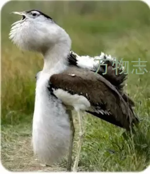 大鸨 鸨名来自这样一个传说:古时有一种鸟,它们成群生活在一起,每群的数量总是七十只,形成一个小家族,于是人们就把它的集群个数联系在一起,在鸟字左边加上一个“七十”字样,就构成了“鸨”。