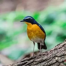 栗腹歌鸲是鹟科、歌鸲属小型鸟类,体长12-14厘米。雄鸟前额和头侧黑色,…