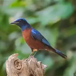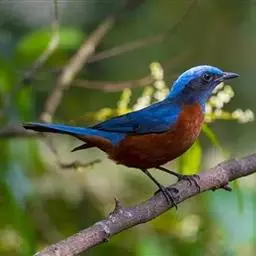栗腹矶鸫是鸫科、矶鸫属小型鸟类,体长20-25厘米。雄鸟上体呈辉亮的钴蓝色,两翅黑褐色,喉蓝黑色,…