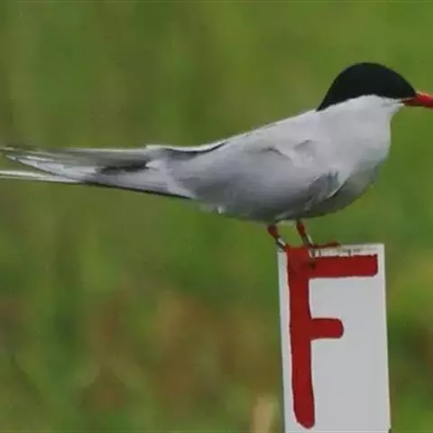 雌性成鸟:与雄鸟相似,但雌鸟以灰色或褐色替代了雄鸟的黑色部分;飞羽和尾羽的黑色较雄鸟浅淡;下体及尾下覆羽的白色略沾棕色。