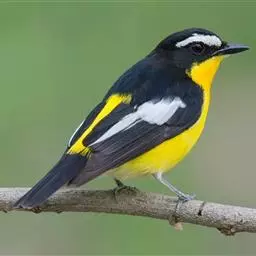 白眉姬鹟是小型鸟类,体长11-14厘米。雄鸟上体大部黑色,眉纹白色,在黑色的头上极为醒目。腰鲜黄色,…