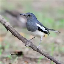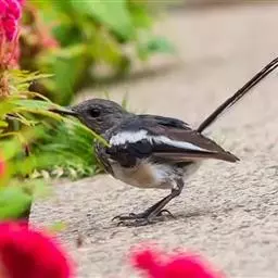 鹊鸲(学名:Copsychus saularis)为雀形目鸫科鹊鸲属的鸟类,体长约21厘米,嘴形粗健而直,长度约为头长的一半或比一半略长;尾呈凸尾状,尾与翅几乎等长或较翅稍长;两性羽色相异,雄鸟上体大都黑色;翅具白斑;下体前黑后白。但雌鸟则以灰色或褐色替代雄鸟的黑色部分。鹊鸲性格活泼好动,觅食时常摆尾,不分四季晨昏,在高兴时会在树枝或大厦外墙鸣唱,因此在中国内地有“四喜儿”之称。出没于村落和人家附近的园圃,栽培地带或树旁灌丛,也常见于城市庭园中。食物以昆虫为主,兼吃少量草籽和野果。是孟加拉的国鸟。