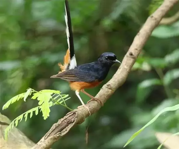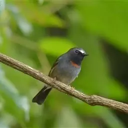 赭红尾鸲:小型鸟类,体长13-16厘米。雄鸟前额、头侧、颈侧、颏至胸概黑色,头顶和背灰色或黑色,…