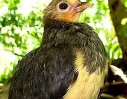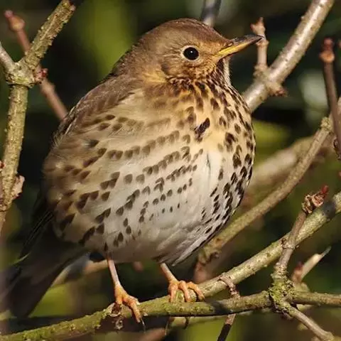 幼鸟上体橄榄褐色,头顶和背具淡棕黄色或棕白色羽干纹,两翅暗褐色,翅上覆羽具橙棕色端斑,外翈羽缘亦为橄榄棕褐色。颏、喉黄白色,两侧各具一条暗褐色纵纹,胸、腹鲜橙棕色具黑褐色端斑,尤以上胸较密而显著,腹至尾下覆羽黄白色,腋羽鲜橙棕色。 虹膜褐色,嘴、脚蜡黄色。