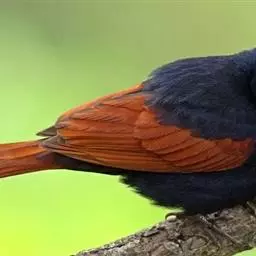 灰头鸫:中型鸟类,体长23-27厘米。整个头、颈和上胸褐灰色,两翅和尾黑色,上、下体羽栗棕色。…