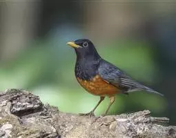 黑胸鸫(学名:Turdus dissimilis)属中型鸟类,体长20-30厘米。雄鸟整个头、颈、胸黑色,其余上体暗灰色,下体橙棕色,极为醒目。嘴、脚蜡黄色。雌鸟上体橄榄褐色,颏、喉白色,上胸橄榄褐色具黑色斑点,其余与雄鸟相似。栖息在海拔1200-1700米的丘陵地带、常单独或成对活动,有时也见成小群。地栖性,多在林下地上和灌丛间活动和觅食。性胆怯,善于隐蔽。分布于中国西南部、印度东北部、缅甸、泰国、老挝、越南等地。